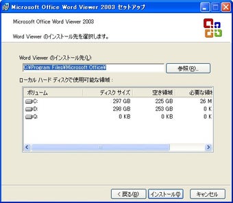 Windows用Microsoft Office Word Viewerのユーザーインターフェース